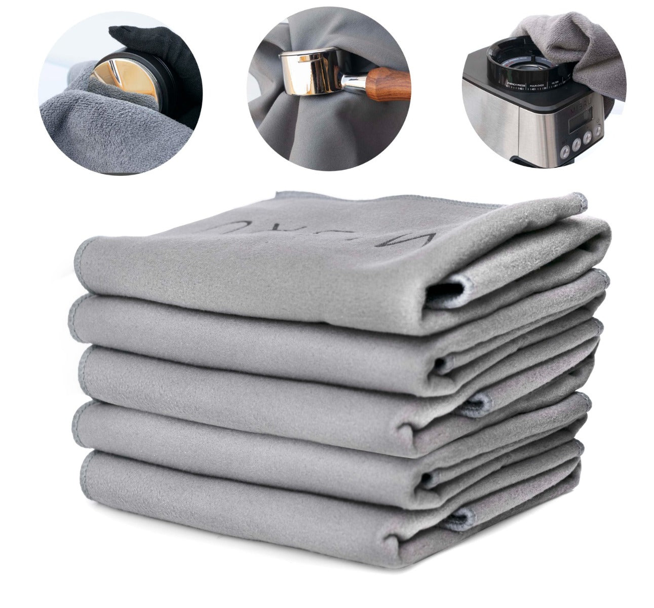مجموعة من مناشف التنظيف المصنوعة من الألياف الدقيقة ذات الوجهين من Mibru، تتميز بجانب ناعم وآخر خشن لتلبية جميع احتياجات تنظيف معدات القهوة الخاصة بك.